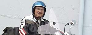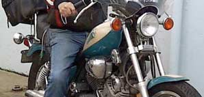 Dan rode his motorcycle to work on all but the stormiest days. There's a great American flag on the back of his jacket!
